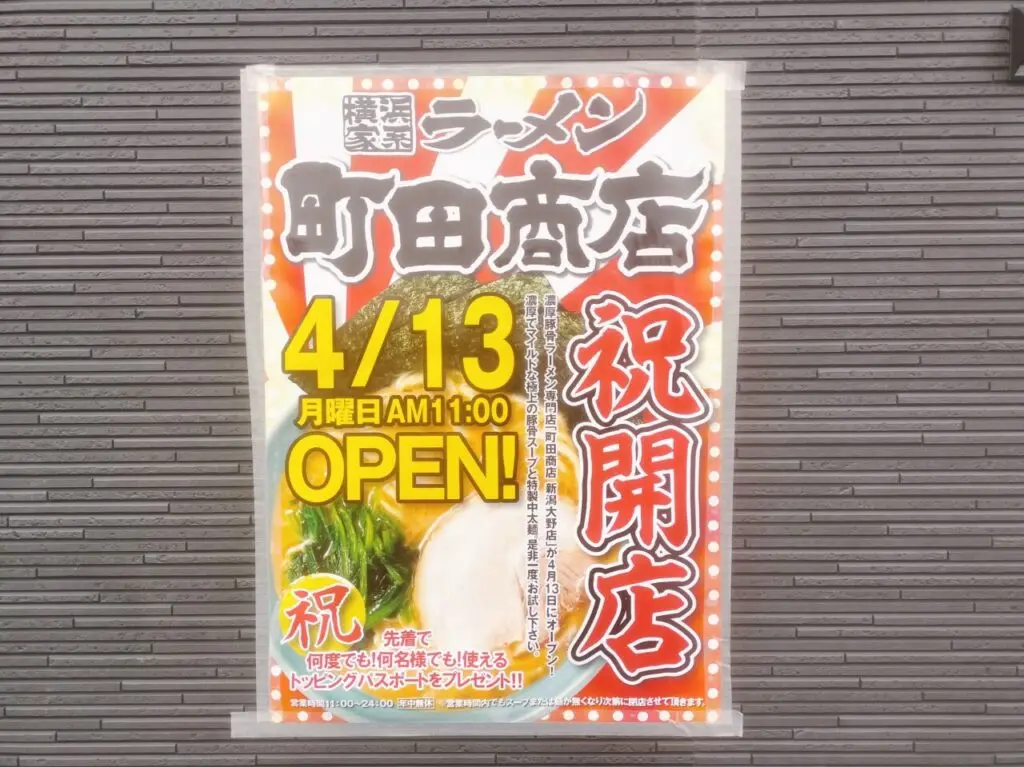 【新潟市西区】横浜家系ラーメンの『町田商店』が2026年4月13日(月)、大野にオープン予定です♪